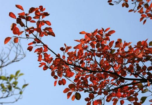 Cotinus coggygria Scop., also known as red leaves, is an important ornamental red leaf tree species in China. Its leaves turn red in autumn and are bright and dazzling. Cotinus is a small deciduous tree or shrub with a round crown, up to 3-8m in height, 2.5-6cm in width, yellow xylem, odorous sap; single leaves alternate, leaves entire or toothed, petioles thin, no stipules, Leaves obovate or oval.